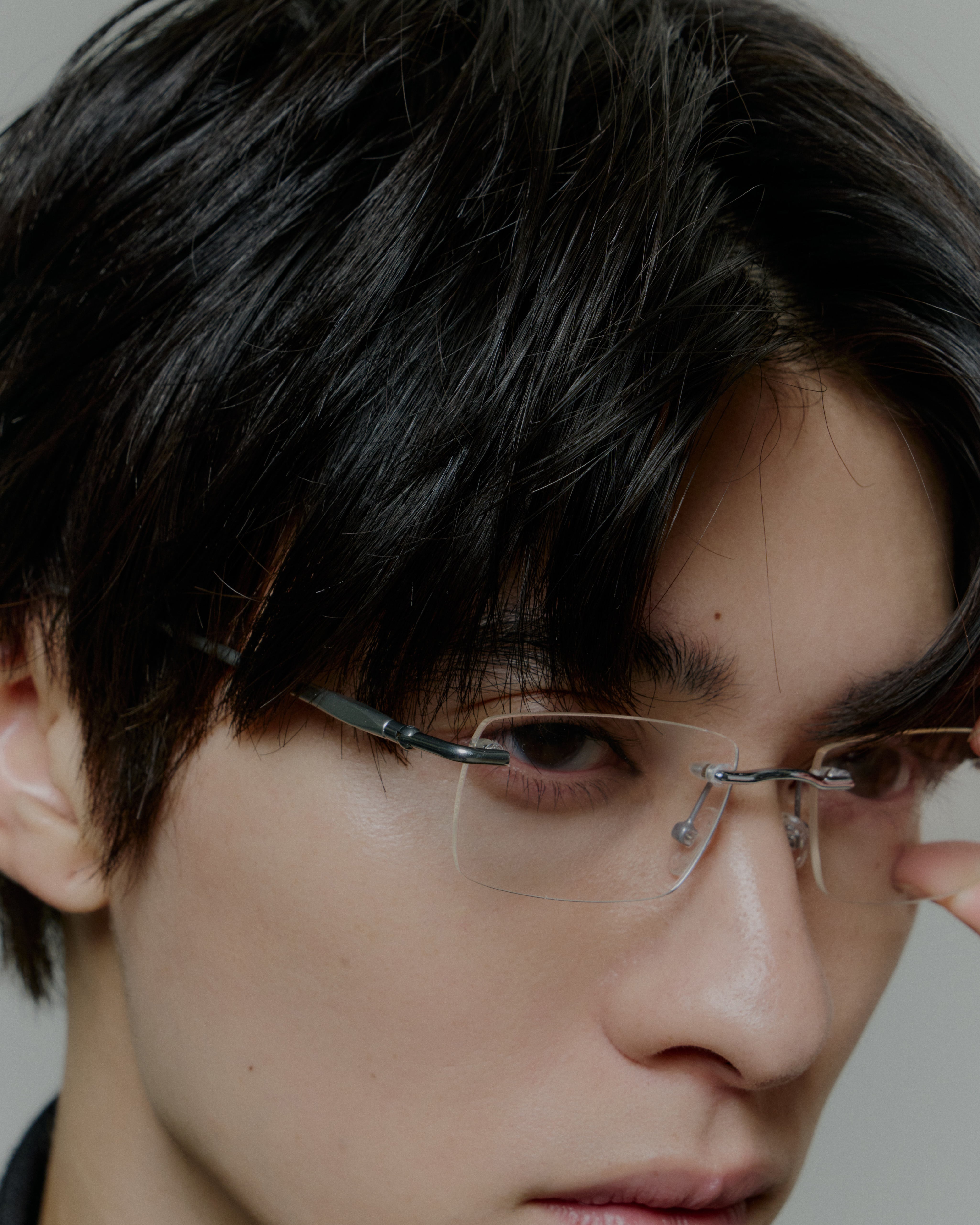 商品説明:コーデのワンポイントになるヌーディーな縁なしリムレスクリアサングラス。これ1本でナードな印象に。