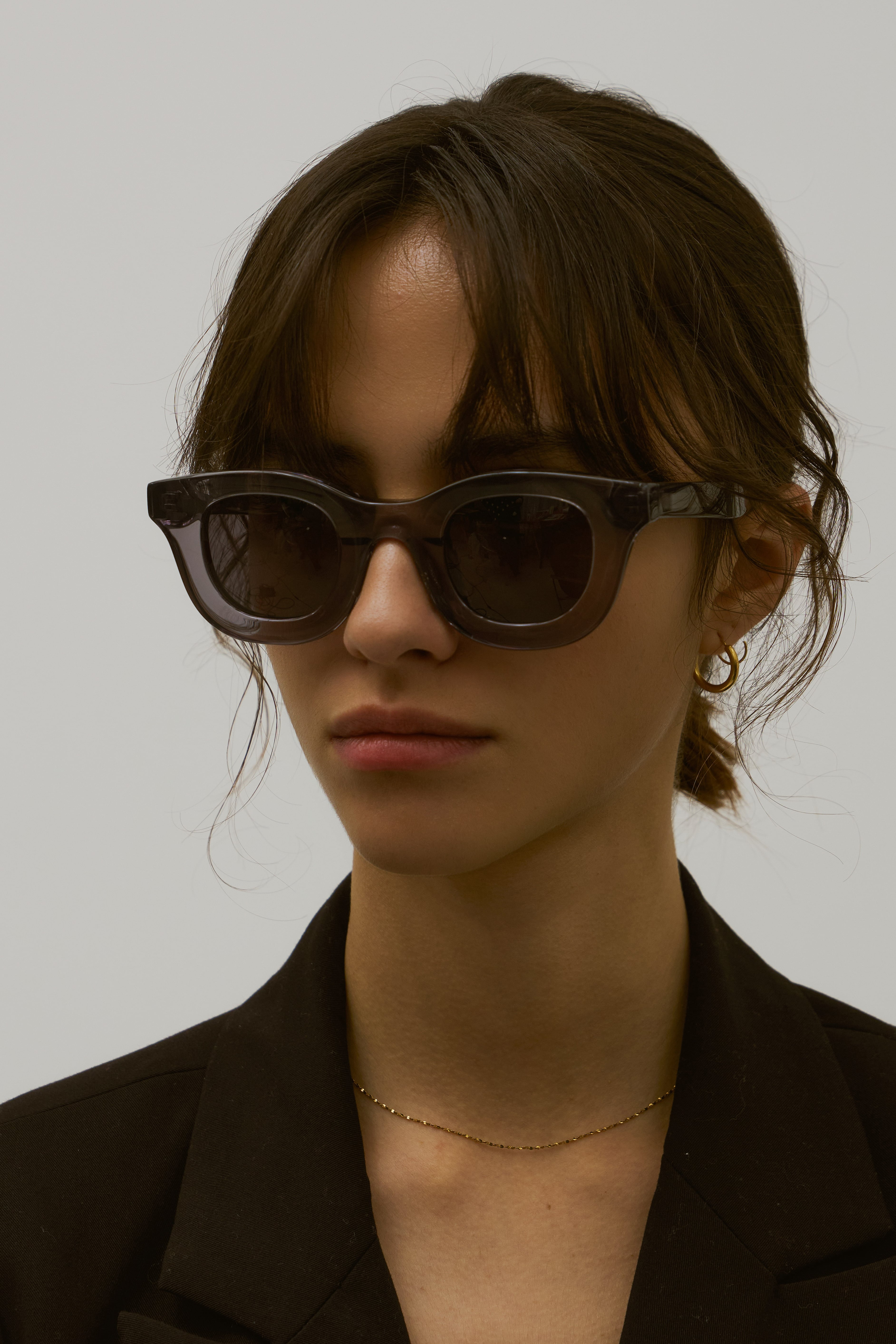 商品説明:重厚感のある上質アセテートフレームを使用したラグジュアリーな1本。リムを太くすることで存在感を演出。程よいカーブをかけた洗練されたモダンなシルエットが特徴。