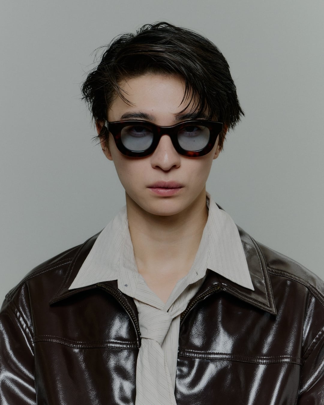 商品説明:重厚感のある上質アセテートフレームを使用したラグジュアリーな1本。リムを太くすることで存在感を演出。程よいカーブをかけた洗練されたモダンなシルエットが特徴。