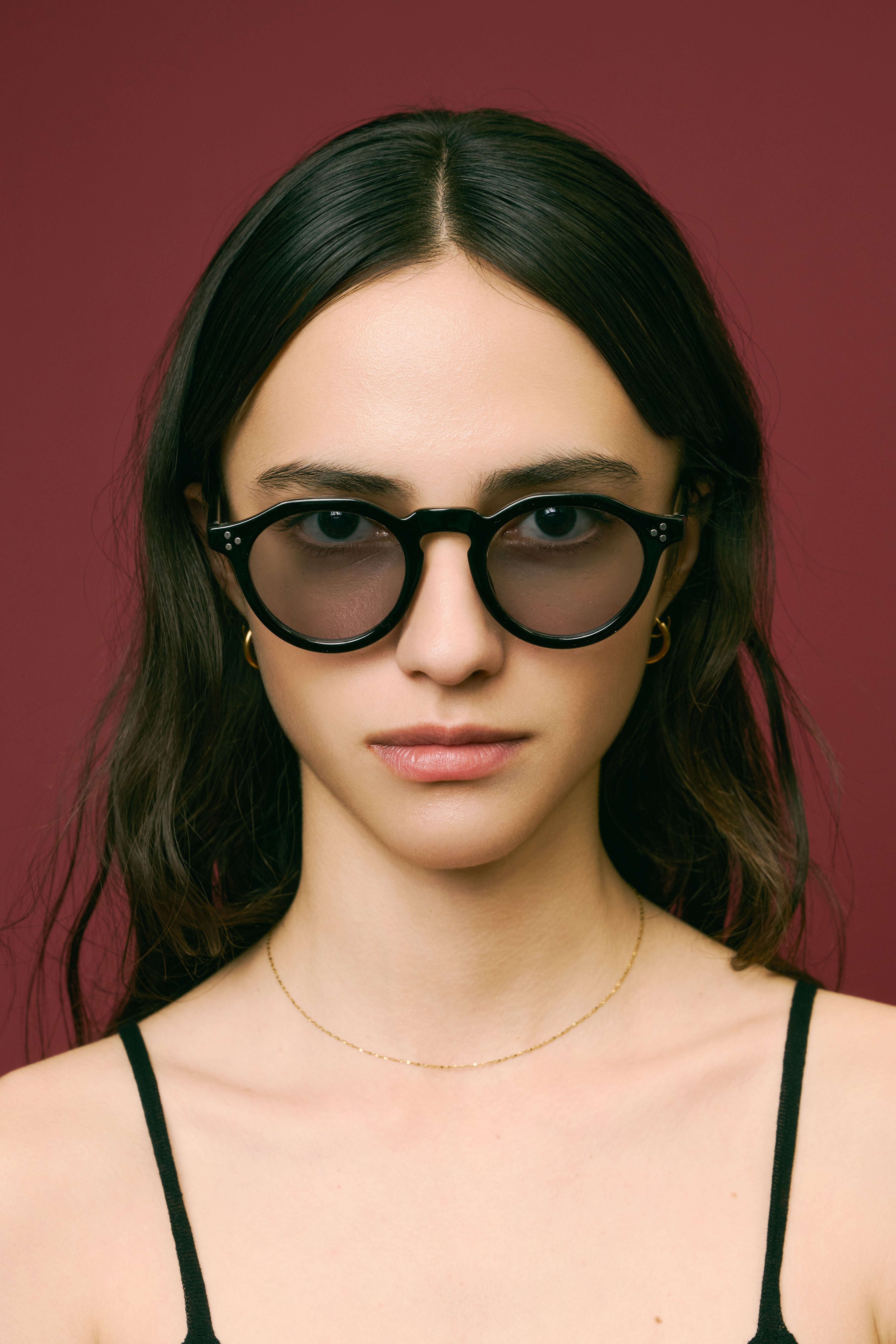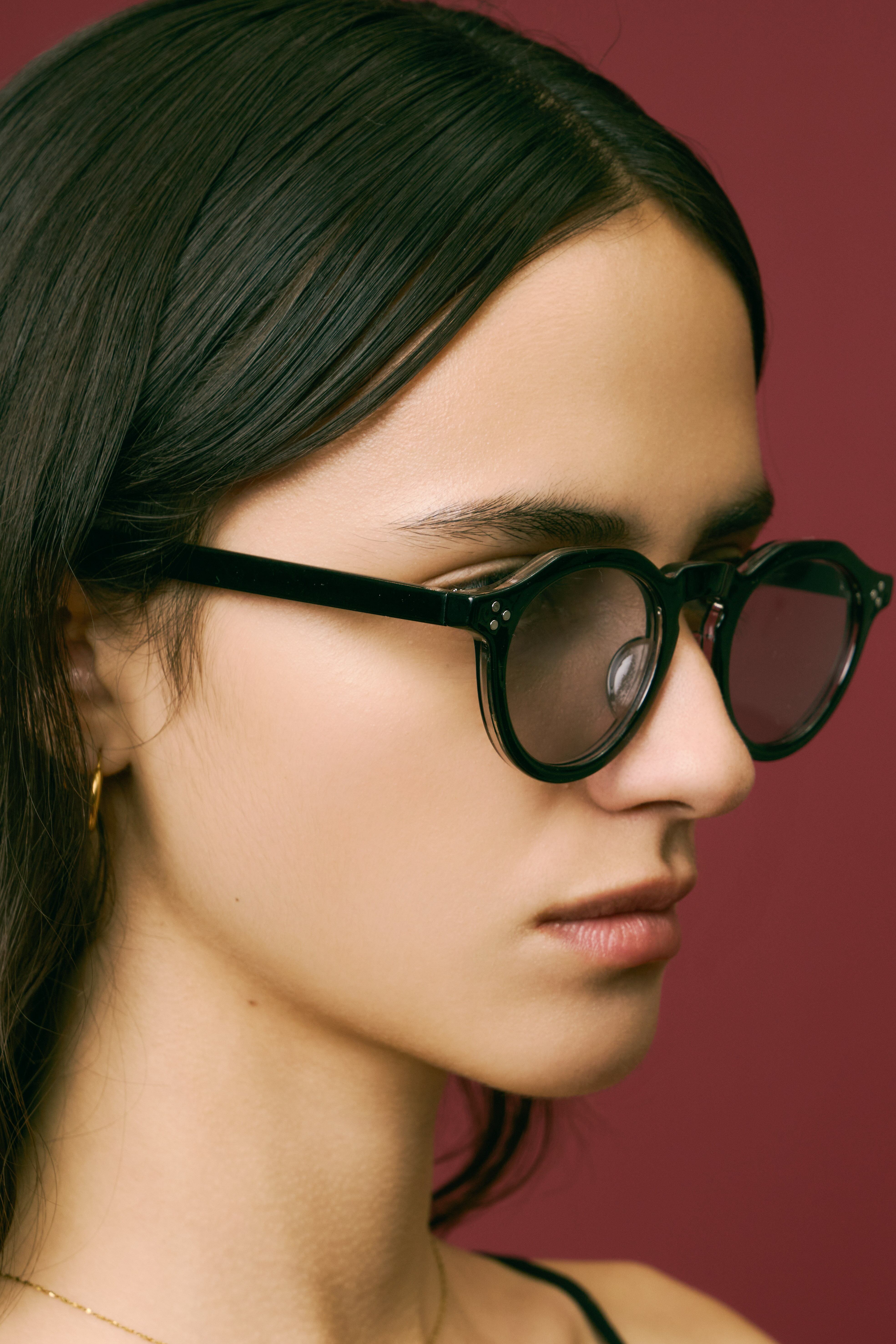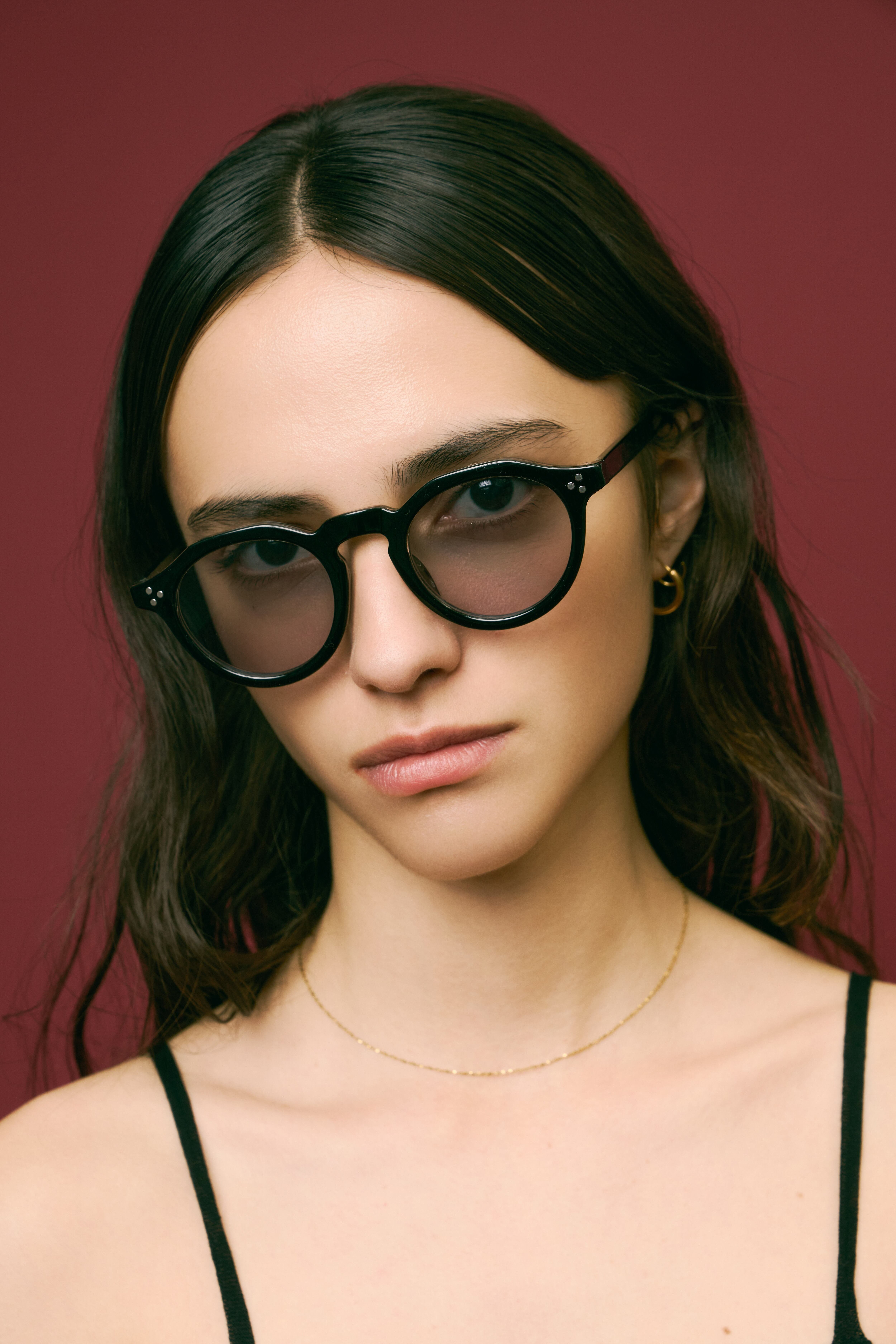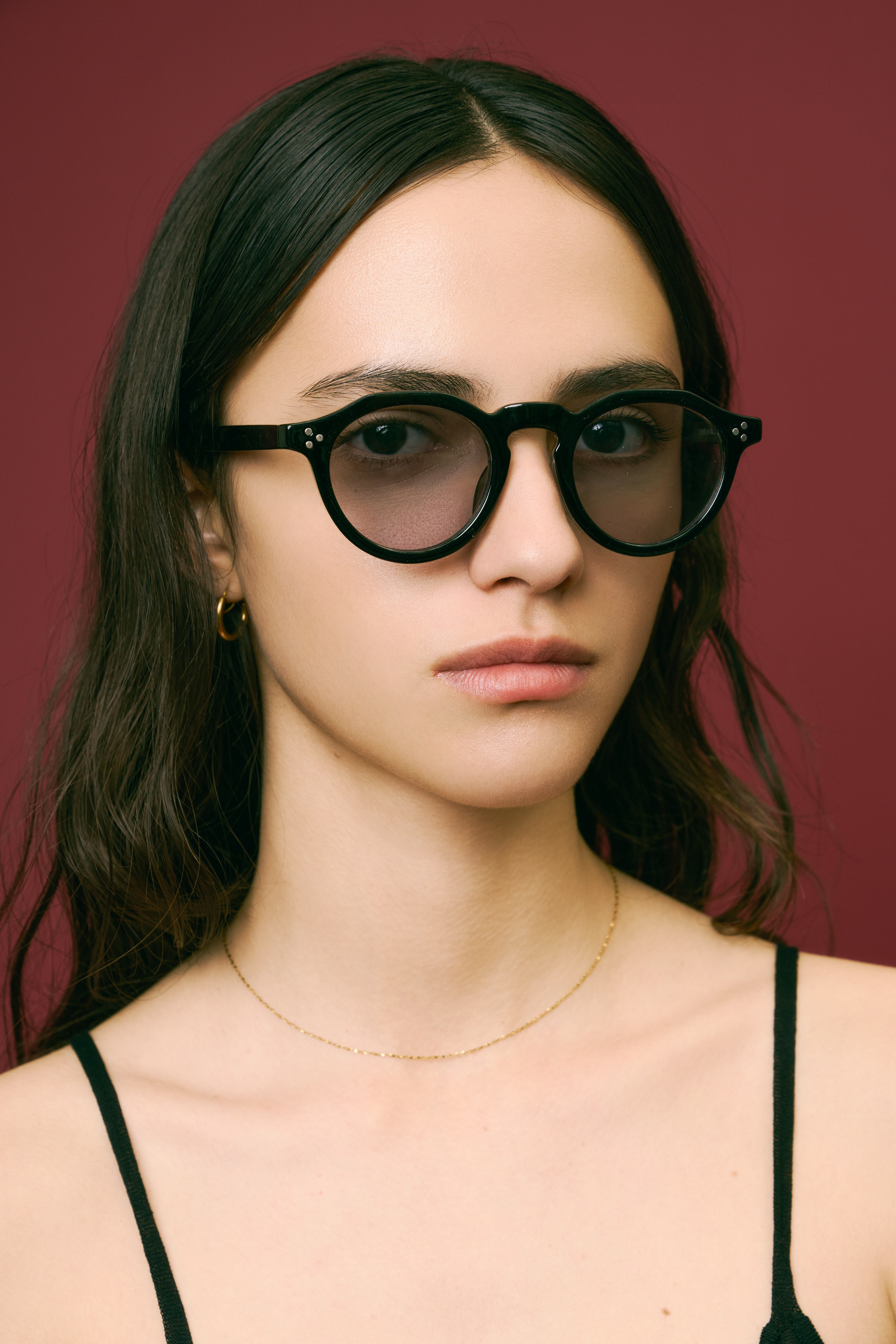 商品説明:ボストンフレームに直線的なデザインを加えた多角形のシェイプが特徴的なクラウンパント型サングラス。程よい太めのデザインがトレンド感のあるこなれた印象に。
