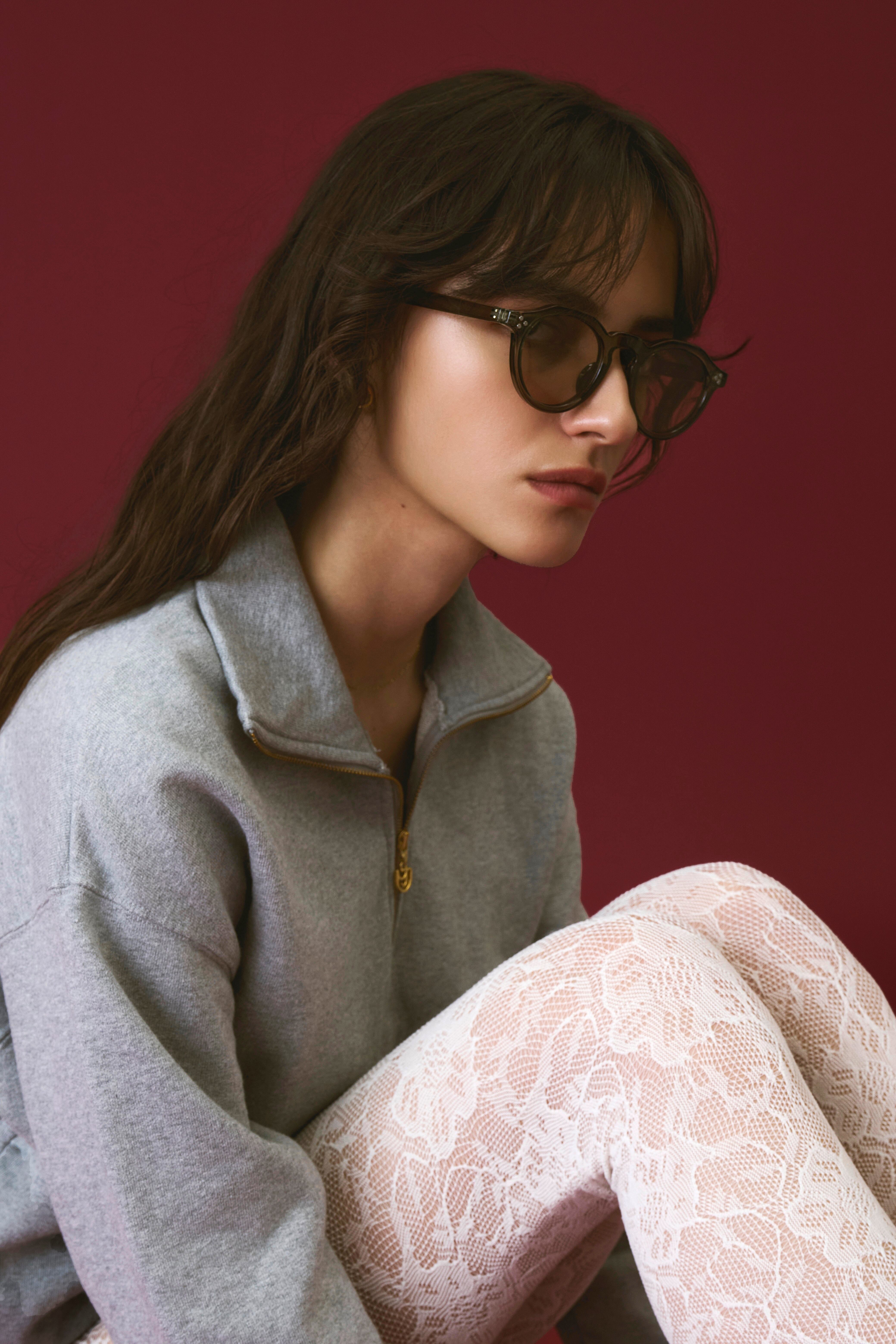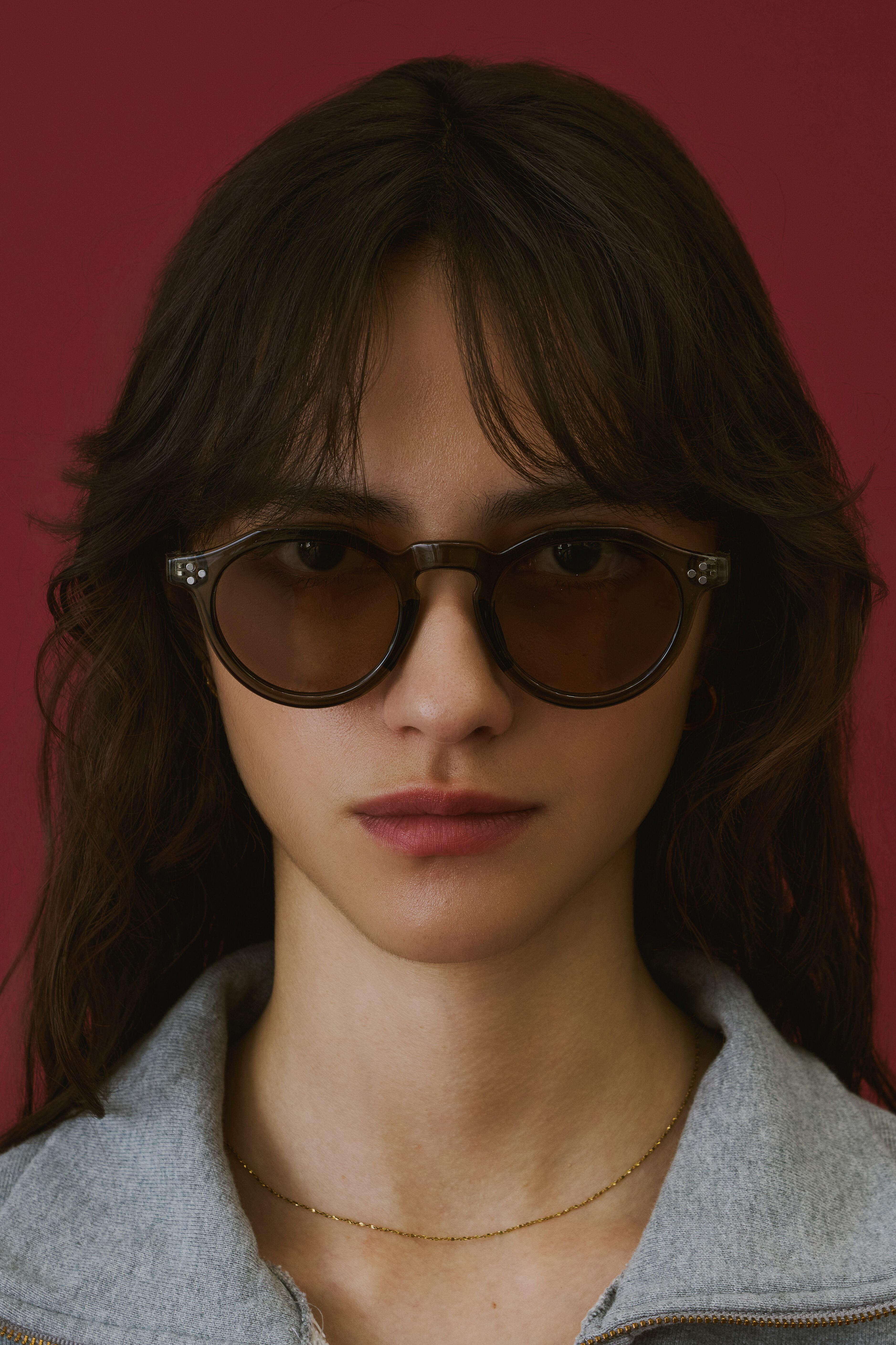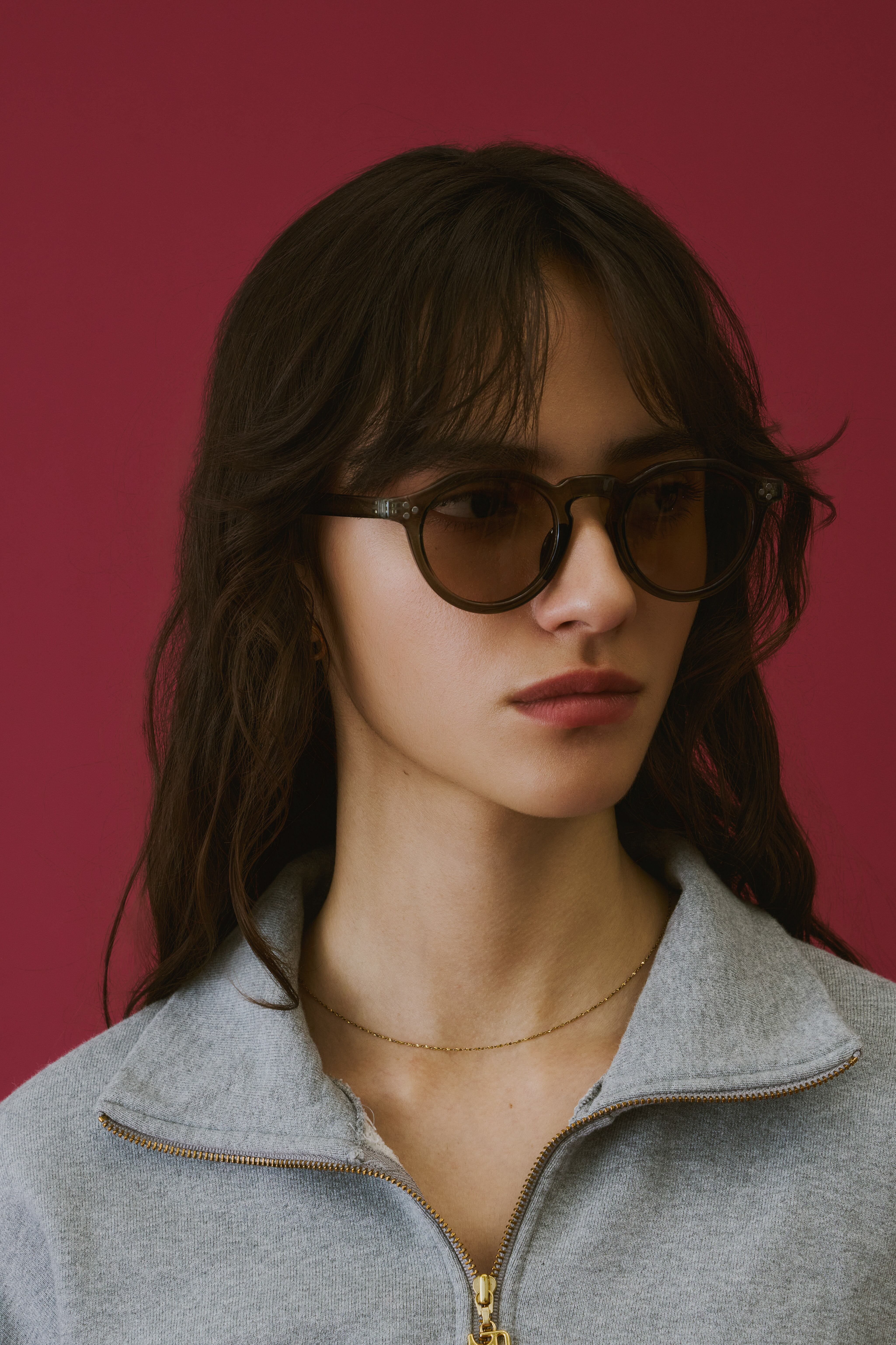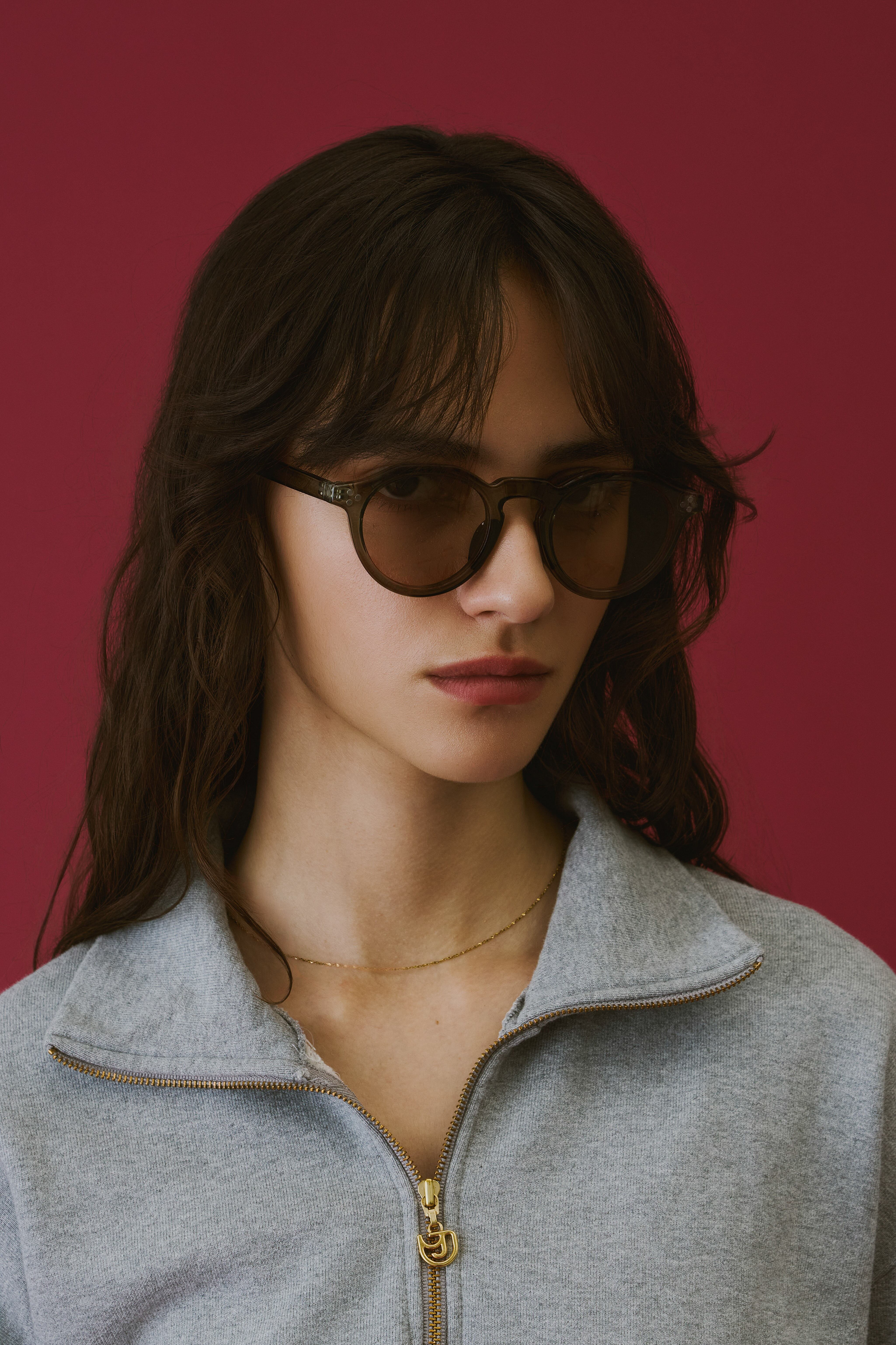 商品説明:ボストンフレームに直線的なデザインを加えた多角形のシェイプが特徴的なクラウンパント型サングラス。程よい太めのデザインがトレンド感のあるこなれた印象に。