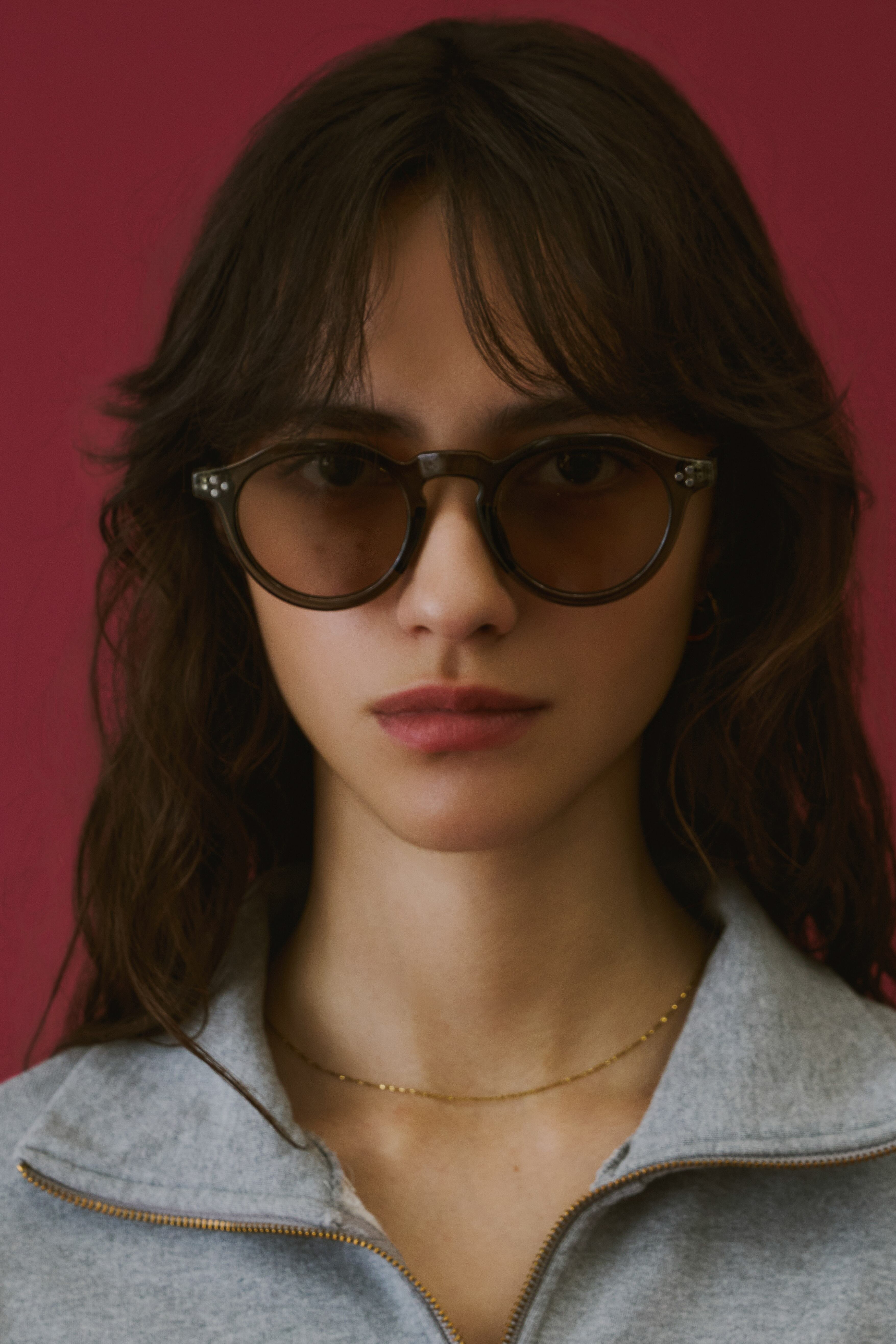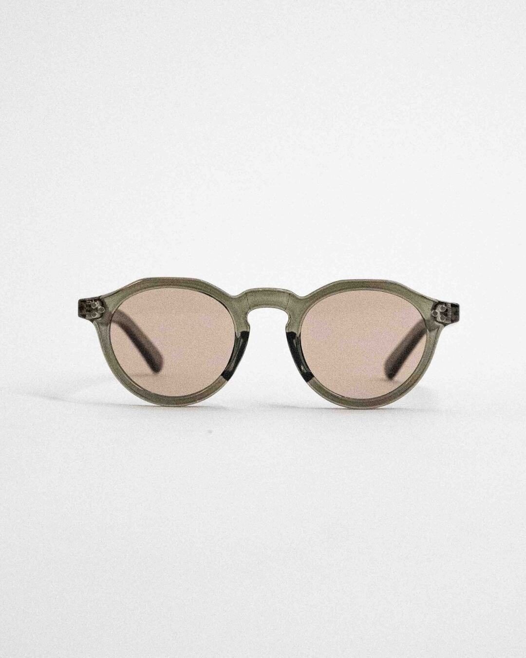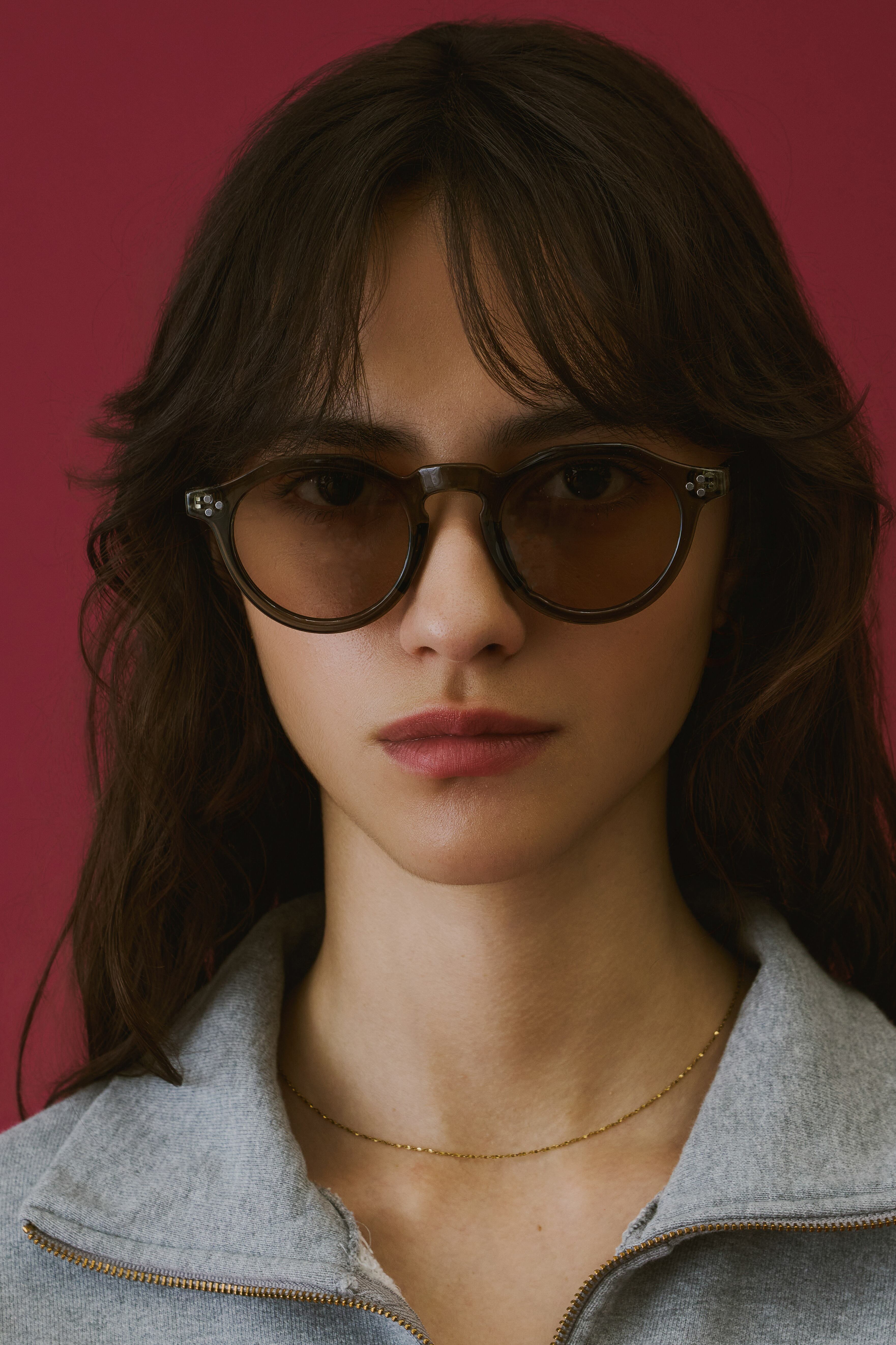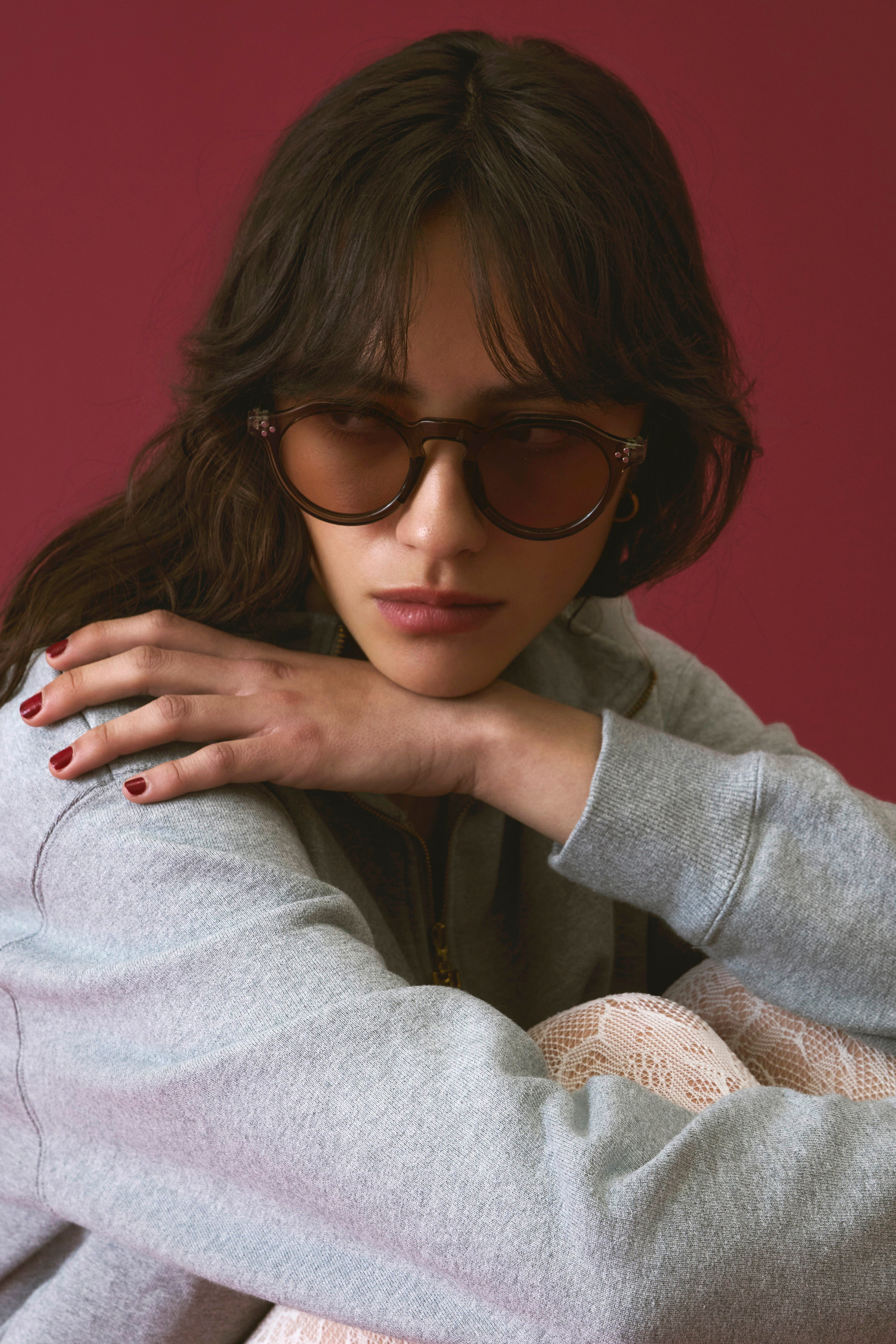 商品説明:ボストンフレームに直線的なデザインを加えた多角形のシェイプが特徴的なクラウンパント型サングラス。程よい太めのデザインがトレンド感のあるこなれた印象に。