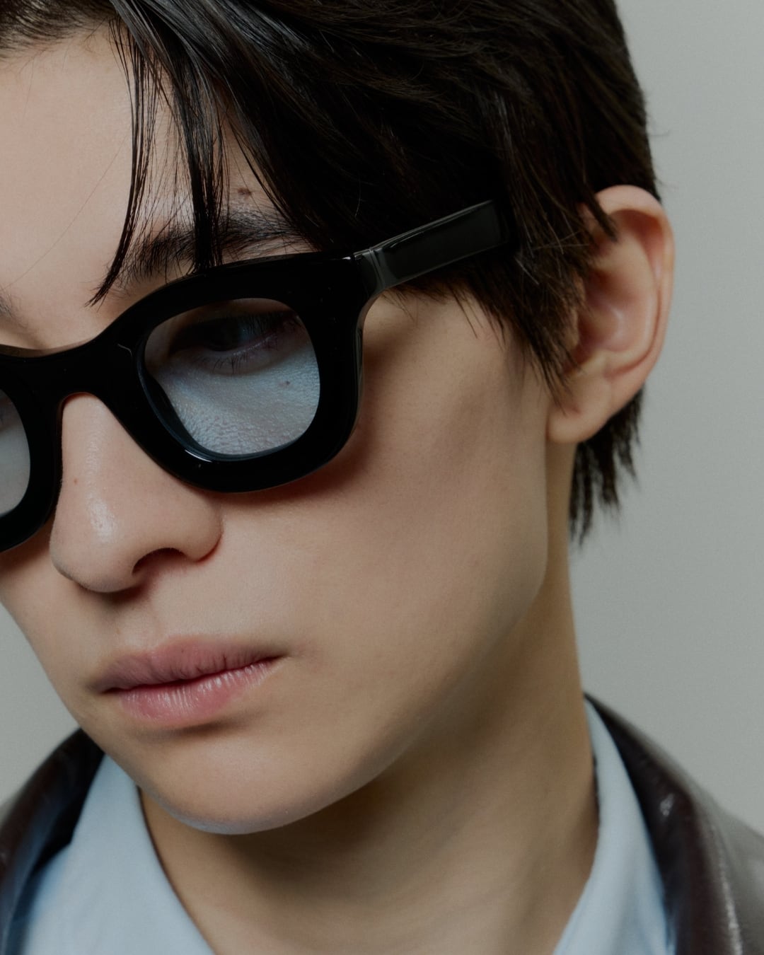 商品説明:重厚感のある上質アセテートフレームを使用したラグジュアリーな1本。リムを太くすることで存在感を演出。程よいカーブをかけた洗練されたモダンなシルエットが特徴。